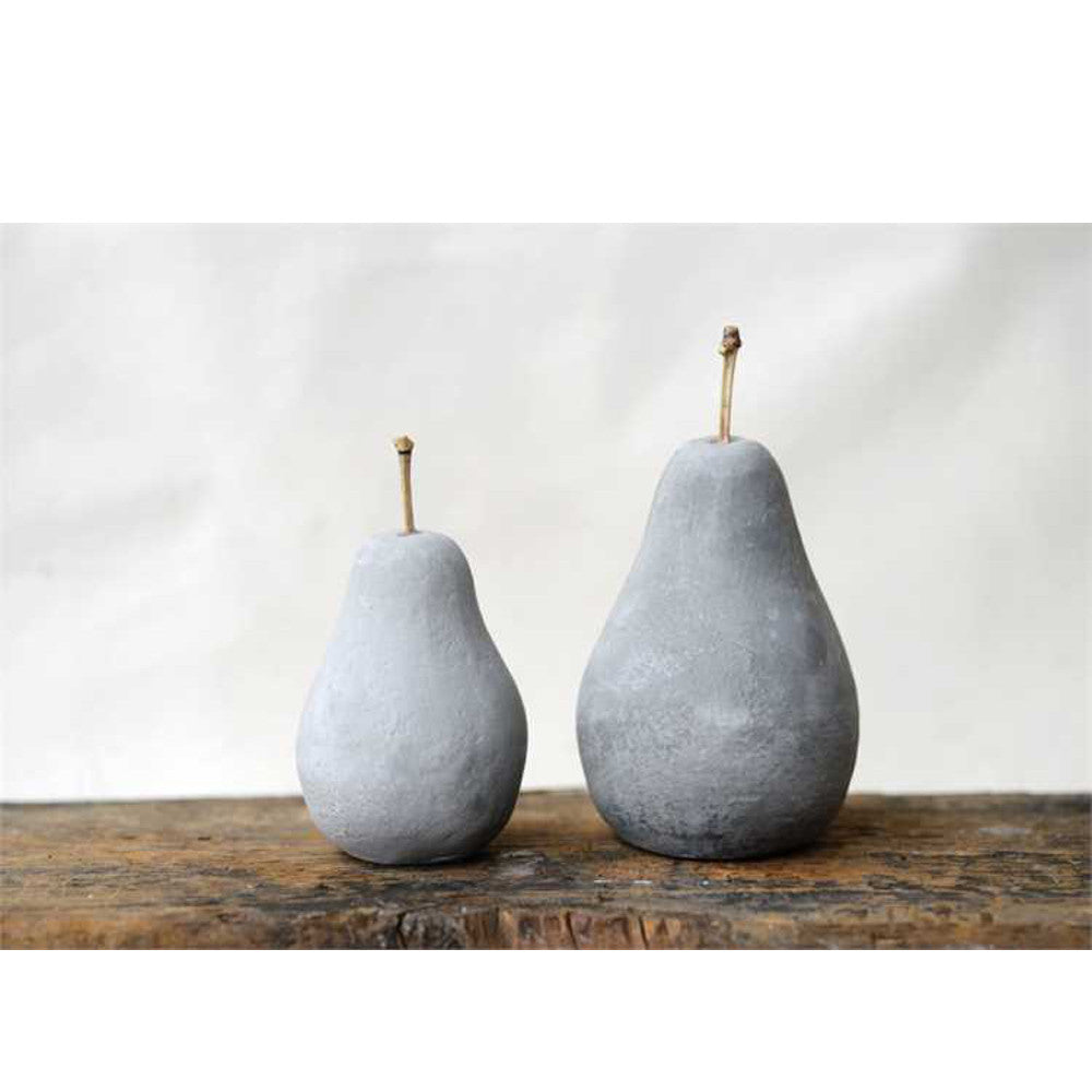 Choose between a 4 inch and 5 inch pear, or pick multiple sizes to add dimension and interest to your table centerpiece, holiday decor theme, fruit bowl, desk, or anywhere else you can think of. These pears are great accents for small spaces, and also help to draw focus and excitement to large spaces, as well. Use this cement pear as an accent piece on your fireplace mantel or in the kitchen along with real fresh fruit for a pop of individuality. Consider placing your cement pear against a red or yellow background to give depth and a striking contrast between colors.