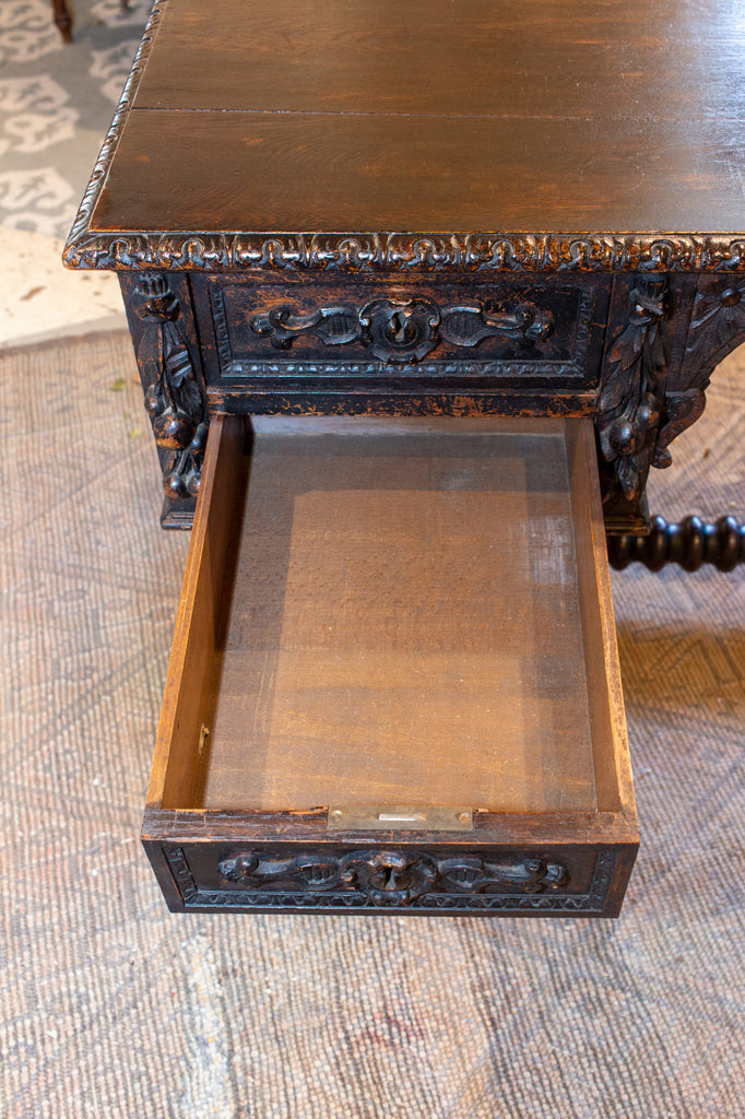 • Antique Jacobean Style Ebonized Wood Desk, circa 1870