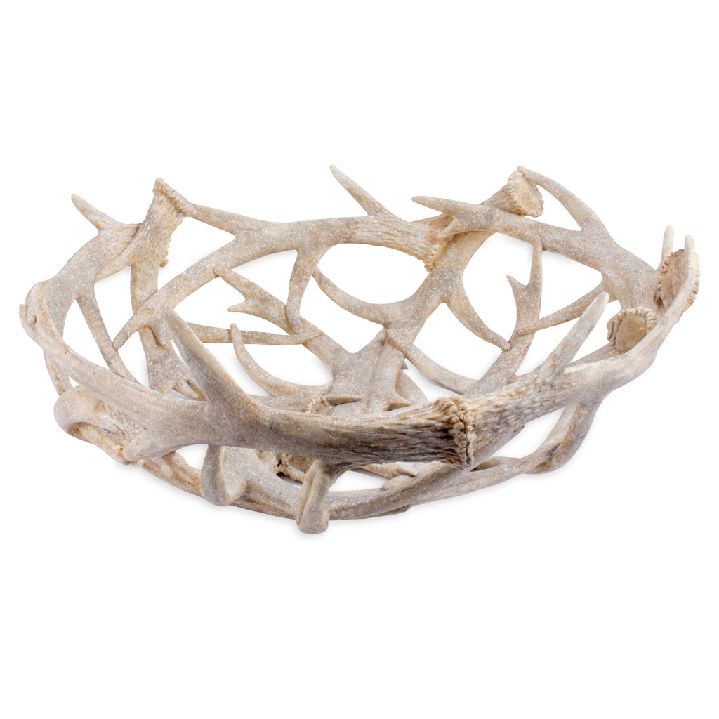 Cast from a mould of real antlers , this bowl is a sculptural centerpiece that can be used year-round and is crafted in resin. The neutral tones in the finish truly work to make this piece look as though it has been crafted with real antlers.