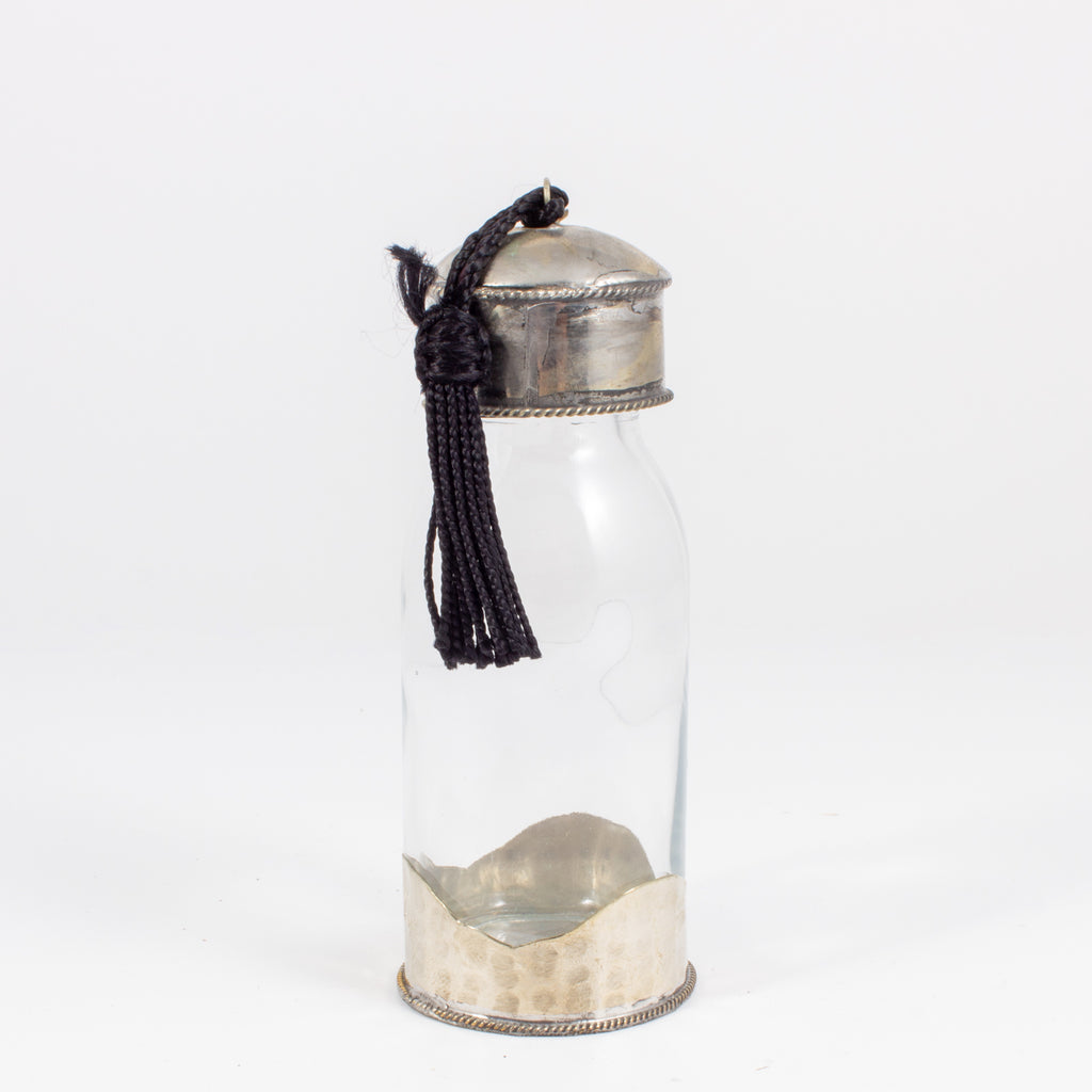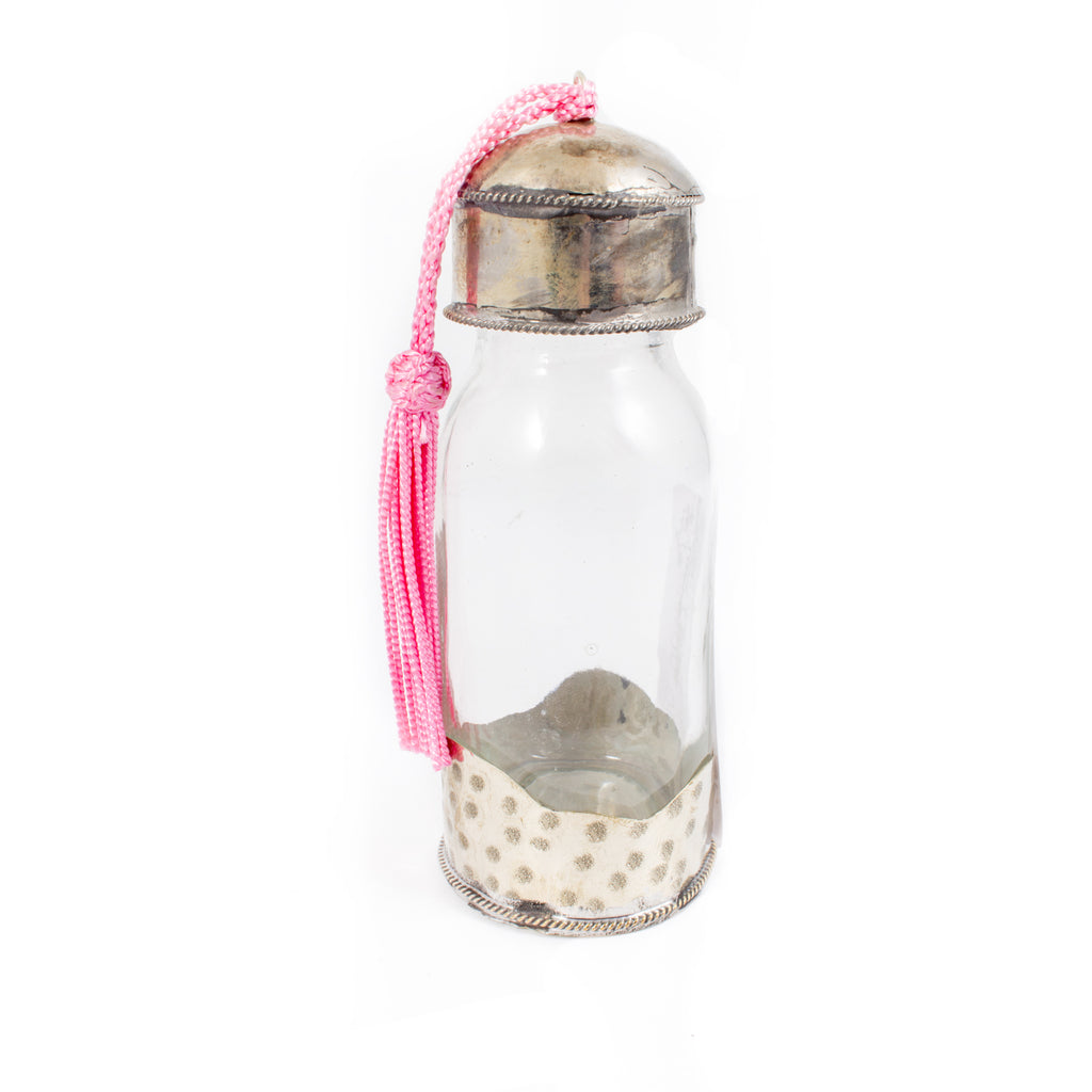 These darling glass bottles are fitted with handcrafted metal details, such as the bottom cover and the screw-top cap. Each cap has a colorful tassel, adding a little charm and a pop of color. Also available in Large size.