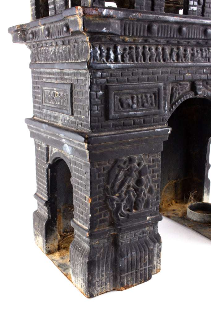 This vintage iron piece is crafted in the image of the famous Arc di Triomphe in Paris, France. The interior of the piece has a place on each side to hold a tea-light sized candle, effectively allowing you to enjoy the beauty of the Arch in your space.